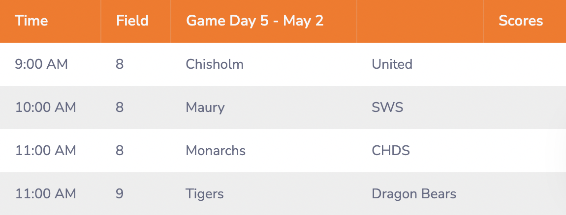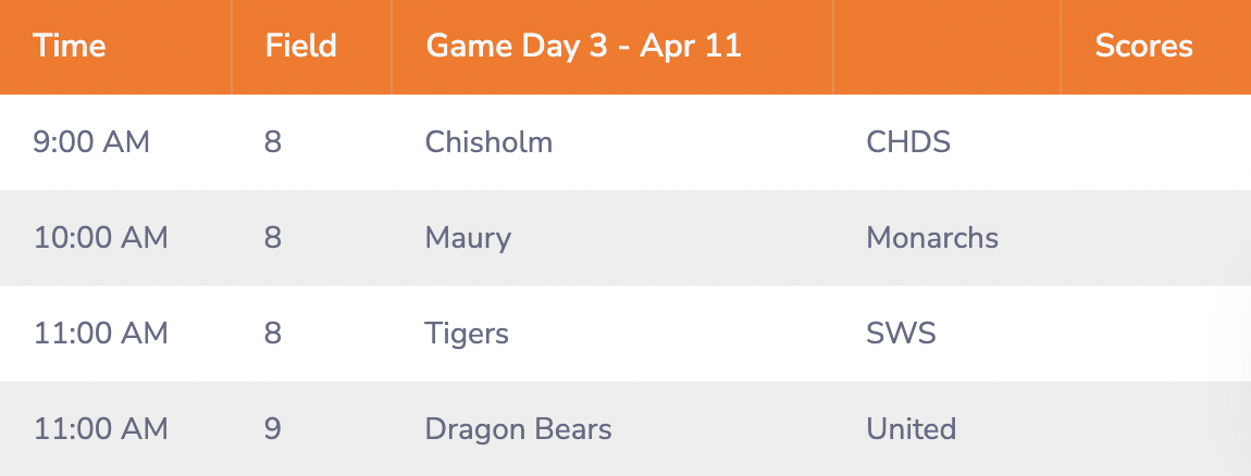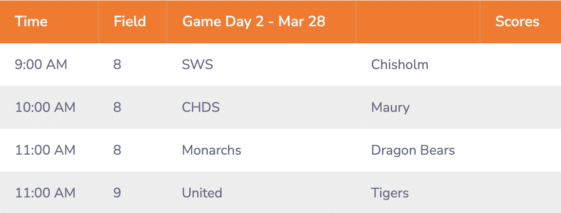 GAME DAY SCHEDULE