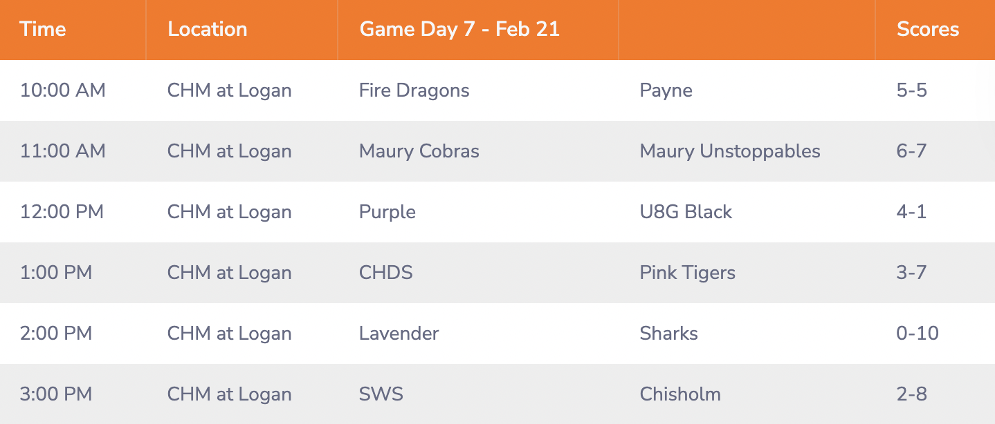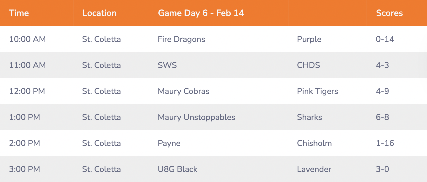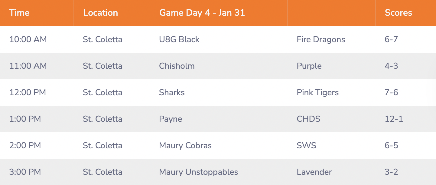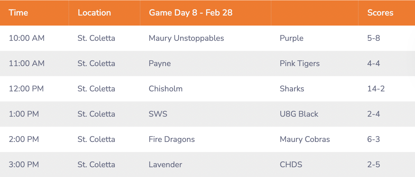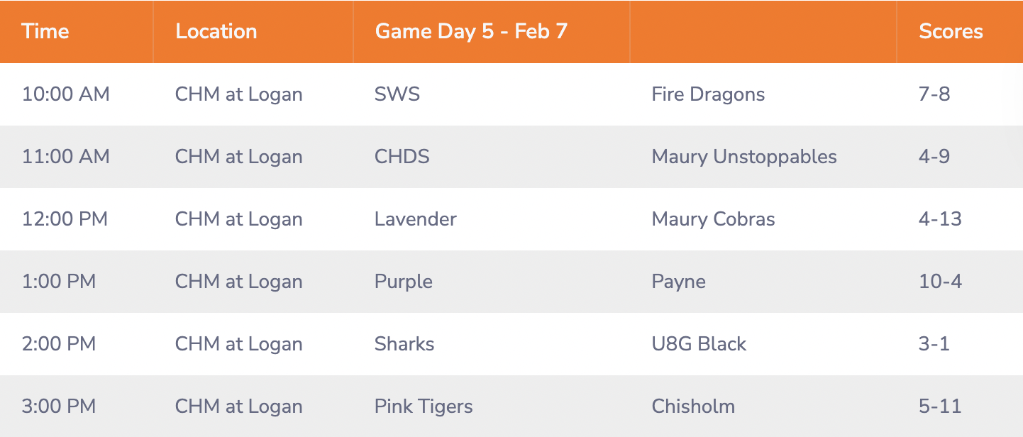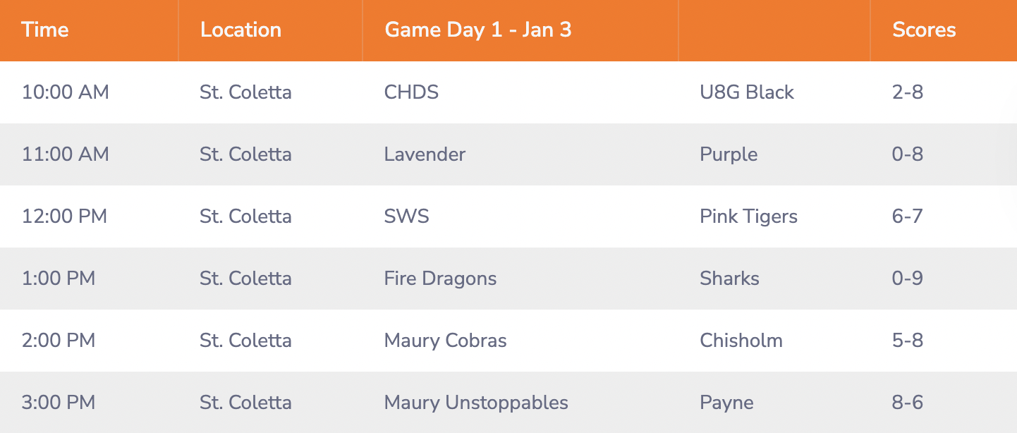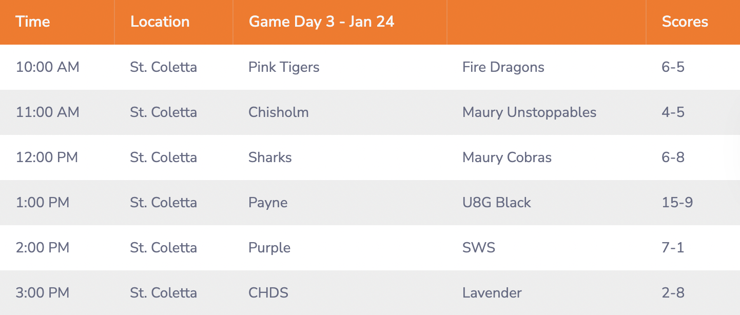GAME DAY SCHEDULE